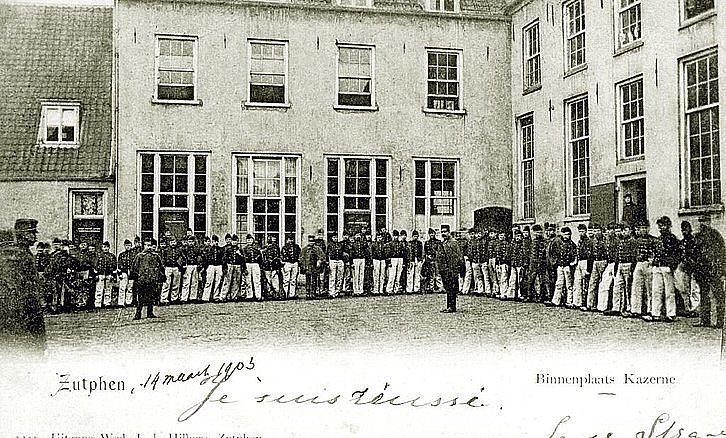 Zutphen - De Nieuwstad met de huzarenkazerne omstreeks 1905
