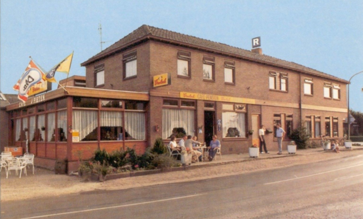 Het Cafe - Pension Fieten op de hoek van het Zuideropgaande en de Carstensdijk in Hollandscheveld omstreeks 1983