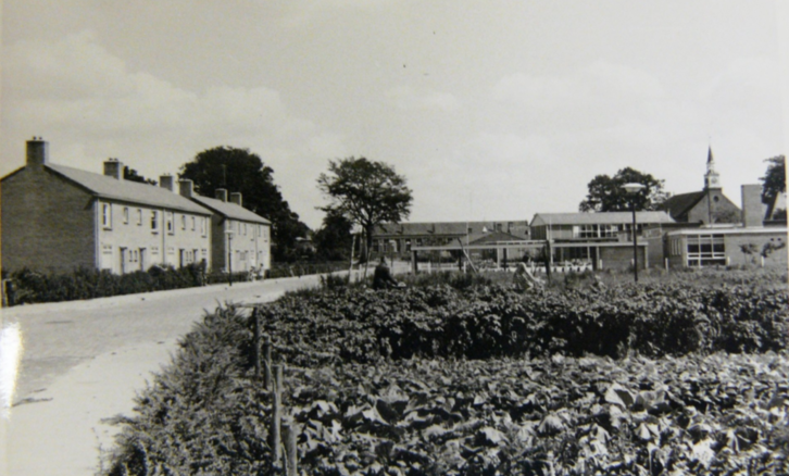 Het kruispunt Kerkenkavel en Doorsnijding in Hollandscheveld omstreeks 1963