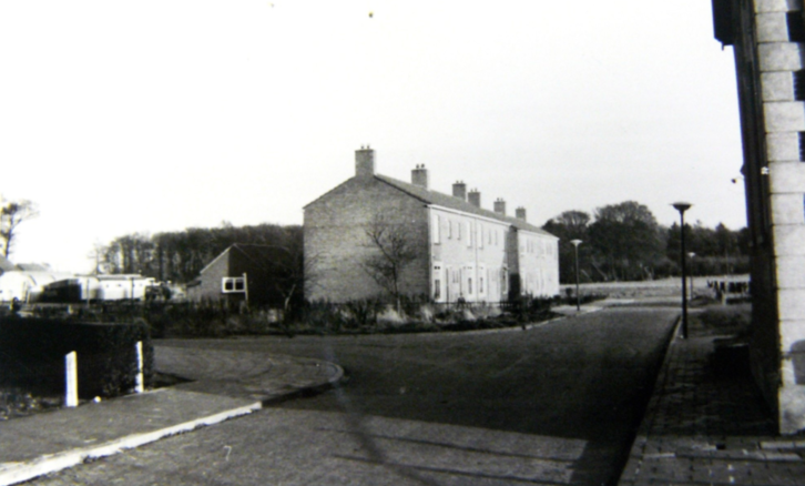 De Hendrik Raakweg bij de hoek met de Roelof Koopsweg in Hollandscheveld omstreeks 1959