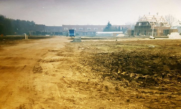 Nieuwbouw in Zuid gezien vanaf de Riegheidestraat in Hollandscheveld kijken we naar de Struikheidestraat omstreeks 1985