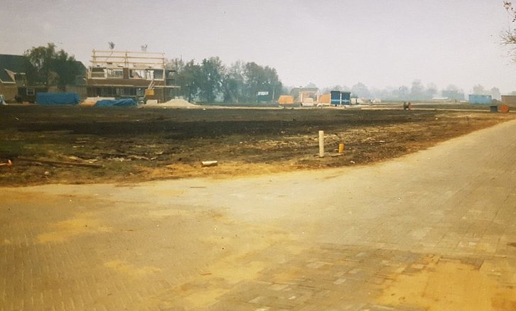Nieuwbouw in Zuid gezien vanaf de Struikheidestraat in Hollandscheveld kijken we naar de Riegheidestraat omstreeks 1985