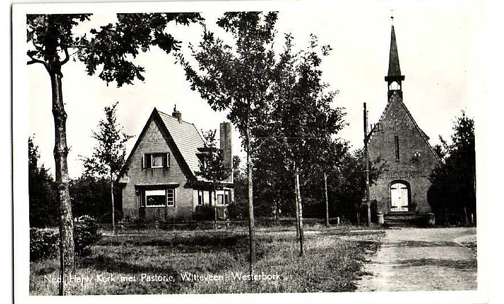 WESTERBORK - De Ned. Herv. Kerk met Pastorie Witteveen in de jaren 60