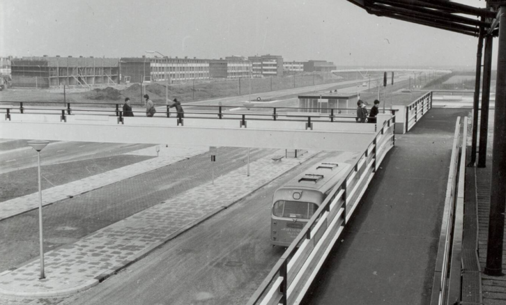 voetgangersbrug naar winkelcentrum en busstation eind jaren 70