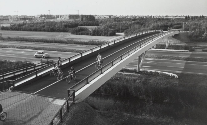 Fiets- en voetgangersbrug in Lelystad omstreeks 1972