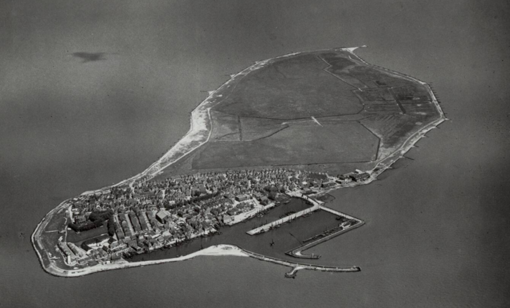 Luchtfoto van het Eiland Urk net voor de opname in Noordoostpolder (1939)