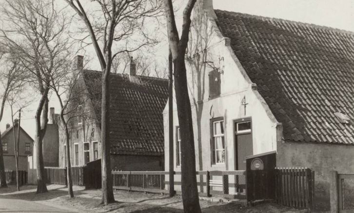 Twee typisch Amelander woningen uit de tweede helft van de zeventiende eeuw aan de westzijde van de Burenlaan in Hollum eind jaren 50