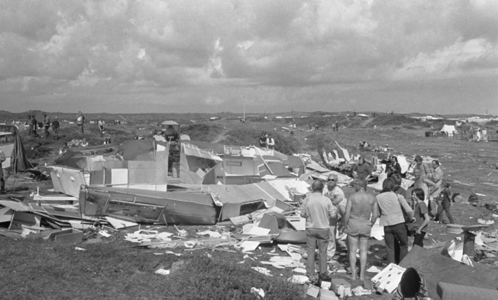 Windhoos op camping op Ameland in 1972 veroorzaakt een ravage op camping Duinoord. Er waren 3 doden te betreuren en enkele honderden mensen raakten gewond.