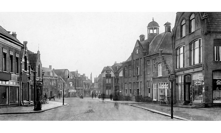 LEEUWARDEN - Panorama van de Schrans mét tankstation van Shell in 1929.
