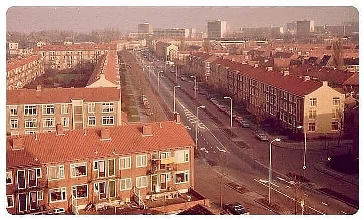 LEEUWARDEN - Het Valerius, in de vroege jaren 70. Foto genomen vanaf de Valeriusflat aan het Europaplein
