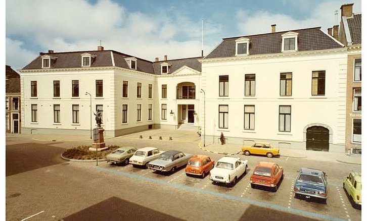 LEEUWARDEN - Het Hofplein met Us Heit met Stadhouderlijk hof in 1975