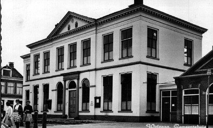 Het Centrumplein in Wolvega omstreeks 1964 met het oude gemeentehuis
