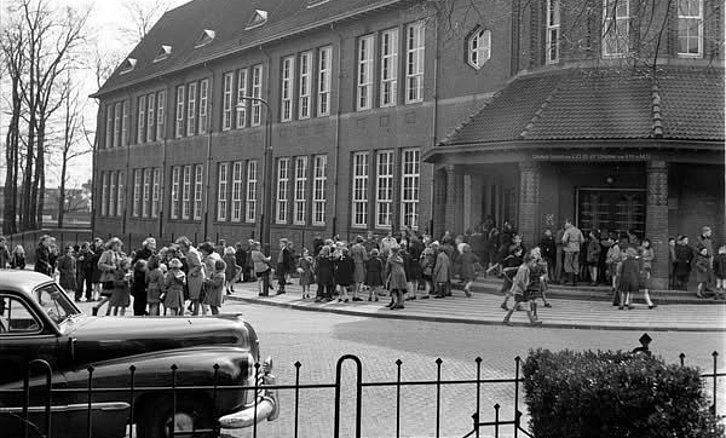 School aan het Tamboersbosje op de punt van de Bouriciusstraat en de Brantsenstraat eind jaren 50