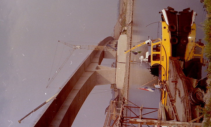 Bouw westelijk deel van de Andrej Sacharovbrug in 1988