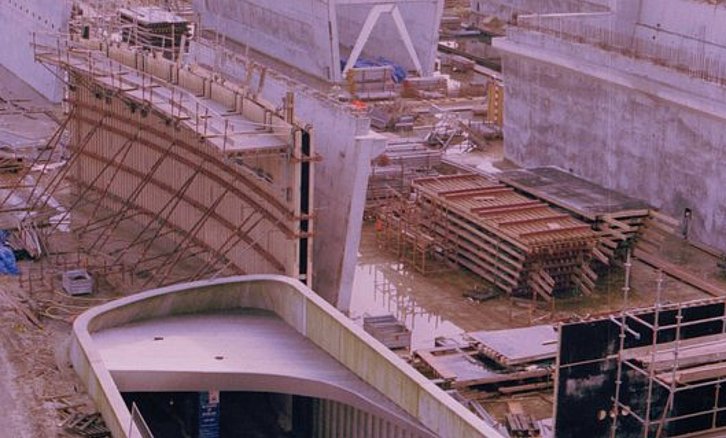 Bouw Parkeergarage Centraal, bouwen luchtschachten. Foto februari 2002