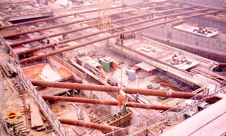 Bouw Parkeergarage Centraal, leggen vloeren. Foto februari 2001