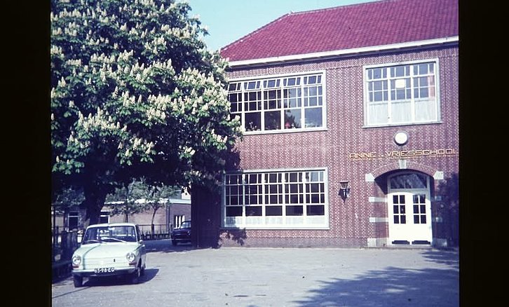 EPE - De Anne de Vriesschool midden jaren '70. Met de DAF 55 van meester P. van Helden.