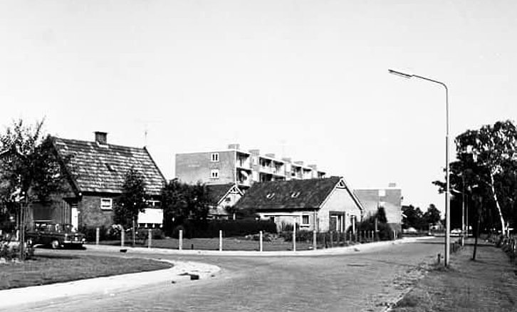EPE - De Kwartelweg in de jaren 60 met in de achtergrond zichtbaar de flats aan de Hopstraat