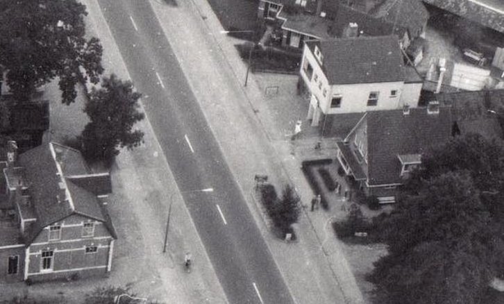 EPE - De Hoofdstraat in de jaren 60 met duidelijk herkenbaar rechts het witte pand van Montizaan, waar nu (2025) pizzeria Kapadokya zit