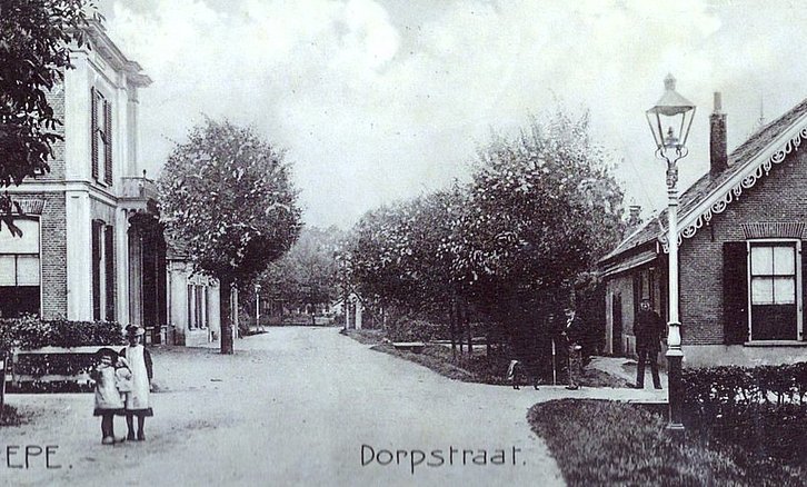 EPE - De Dorpsstraat in 1907 - Het pand links is nu de Fleuropwinkel van Veenbergen (voorheen Wagenaar bedrijfskleding)