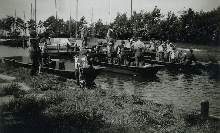 onderofficieren in opleiding bij de Infanterieschool in de jachthaven bij zeilschool van Sterker