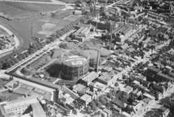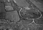 Luchtfoto uit 1925 met Van Calcar's Houthandel aan de Friesestraatweg