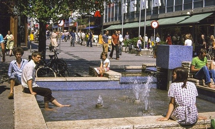 GRONINGEN STAD - De Herestraat bij de fontein eind jaren 70