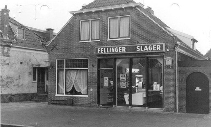 HOOGEZAND-SAPPEMEER - De Hoofdstraat met Slagerij Fellinger halverwege de jaren 70