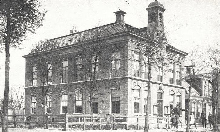 HOOGEZAND-SAPPEMEER - Gemeentehuis van Hoogezand aan de Hoofdstraat omstreeks 1905