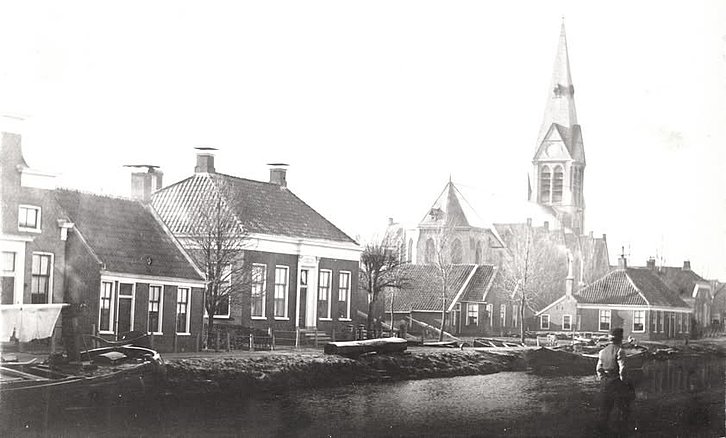 HOOGEZAND-SAPPEMEER - De Noorderstraat Sappemeer met op de achtergrond de R.K. Kerk omstreeks 1898