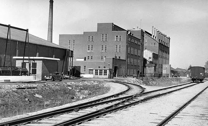 HOOGEZAND-SAPPEMEER - De Noorderstraat (toen nog de Zuiderstraat) bij de strokartonfabriek ca 1955