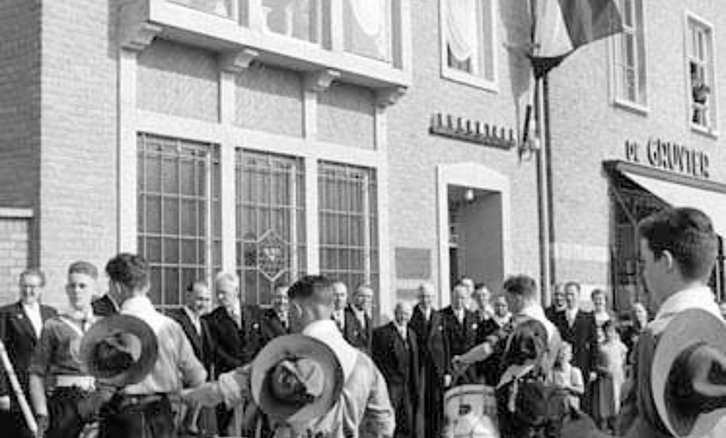MAASTRICHT - De Burgemeester Van Oppenstraat in 1955 tijdens de opening van de spaarbank
