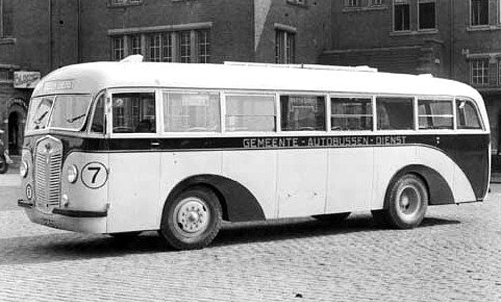 Aw Foto's van Mestreech - het Stationsplein met autobus in de late jaren 30