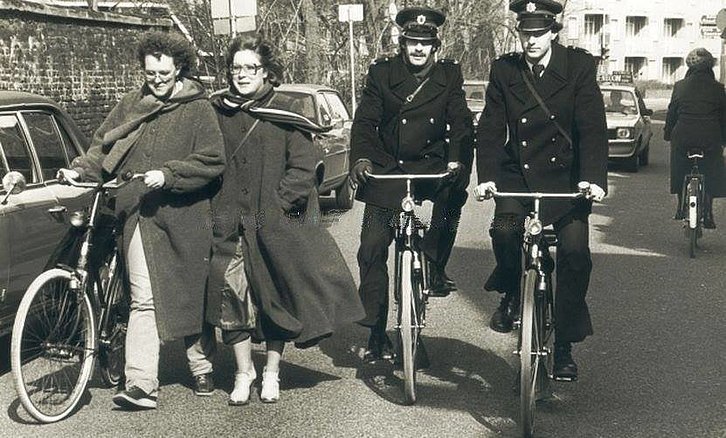De Paardestraat in Sittard omstreeks 1974 met blauw op straat