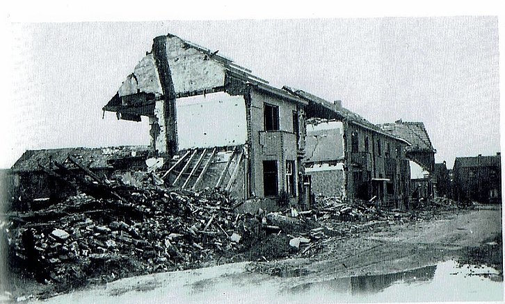 De Van Haeffstraat in Venlo met bombardementschade tijdens WO II