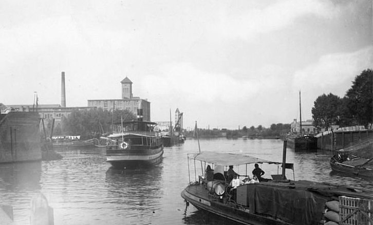 DEN BOSCH VROEGER - De Zuid-Willemsvaart, links op de achtergrond staan veevoederfabrieken, 1932.
