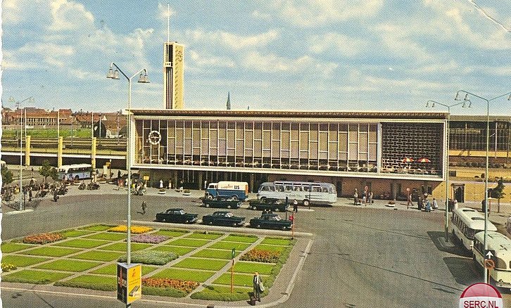 Eindhoven: Het Stationplein van Eindhoven omstreeks 1963 met het Station