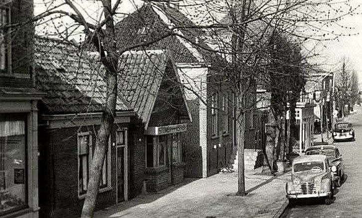 Je bent Aalsmeerder als.... - De Dorpsstraat in 1948. Naast het oude raadhuis het vroegere politiebureau, later stomerij en wasserij. Helemaal links nog net zichtbaar Drogisterij Van der Zwaard