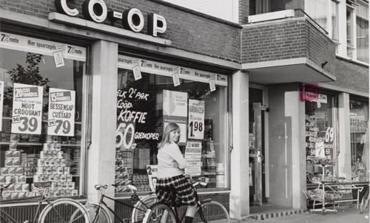 AMSTERDAM - Het Staalmanplein omstreeks 1970 bij de CO-OP winkel van de familie Los