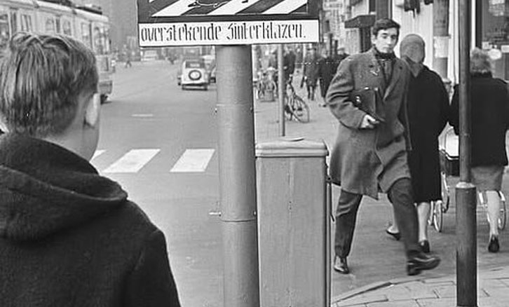 De Vijzelstraat 1964 met wel een heel apart verkeersbord