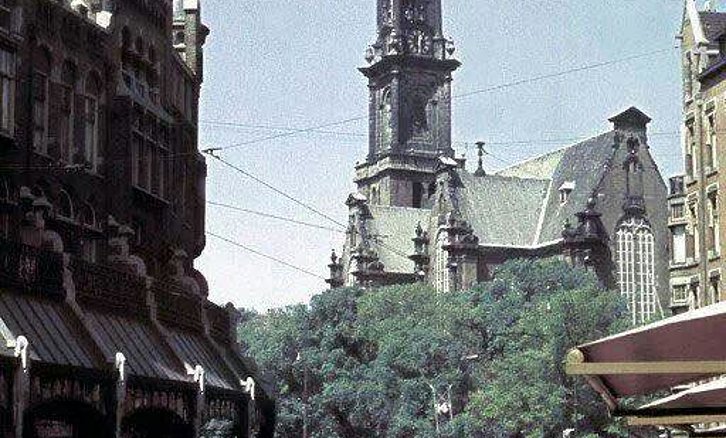 AMSTERDAM - De Raadhuisstraat in Amsterdam in de jaren 50. Op de achtergrond is de Westertoren te zien.