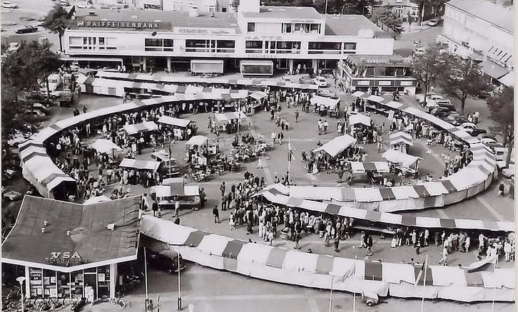 IJMUIDEN - Luchtfoto van het Marktplein uit 1972