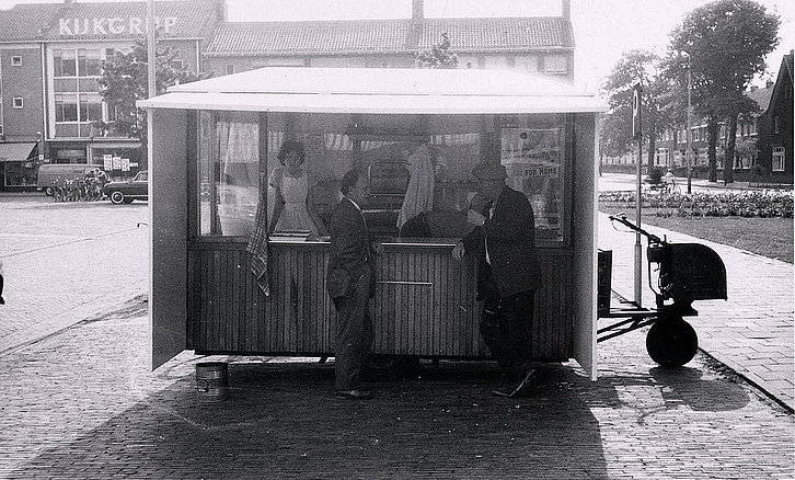 TYPISCH IJMUIDEN - Het Marktplein in 1960 waar je ook toen al lekkere haring kon halen en de KIJKGRIJP al een begrip was in IJmuiden