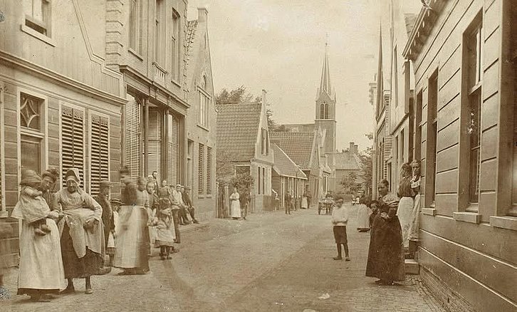 KROMMENIE - De Zuiderhoofdstraat net over de brug van het Vlietsend, rond 1900.