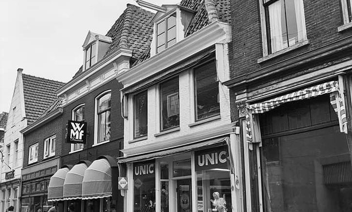 Weesp in Oude en Nieuwe Foto's - De Slijkstraat bij de Unic (overkant van de grotere Unic winkel) in de jaren 60