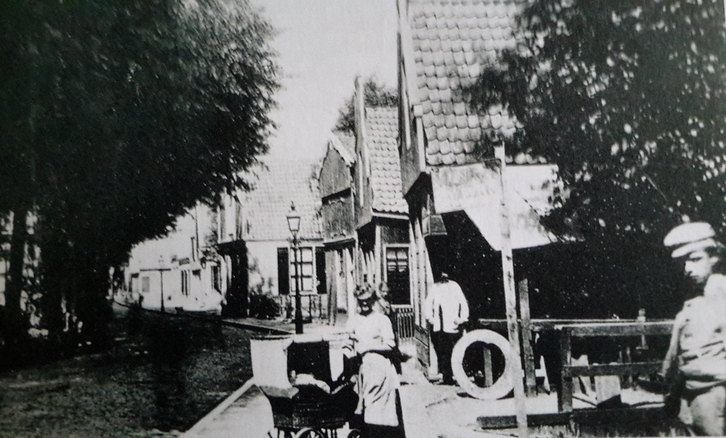 De Westzijde tegenover de Reigerstraat in Zaandam,waar nu de Verkade-fabrieken staan,omstreeks 1880.