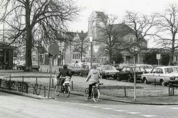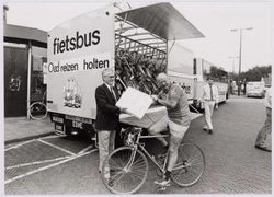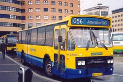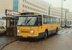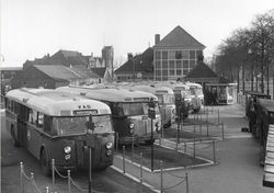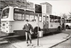 Amersfoort: Lijn 11 op het Stationsplein, met achter de bus de VVV-kiosk (1988)