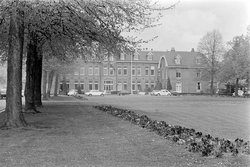 Amersfoort: SDe kruising Utrechtseweg, Stadsring (v.h. Rondweg) en Utrechtsestraat, gezien vanaf de Utrechtseweg. Links café-restaurant Kobus aan de Poort, Utrechtseweg 49, met op de top van de gevel reclame van Erdal (1970)