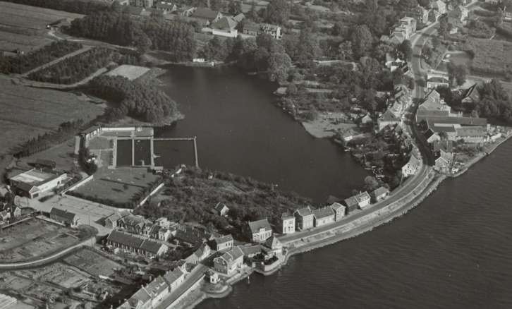 Luchtfoto uit 1955 bij het lammetjeswiel met daar ook nog het openlucht zwembad