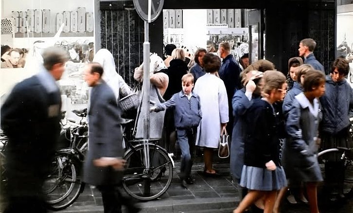 DELFT - De Hippolytusbuurt - Drukte in 1971 voor de winkel van Vroom en Dreesmann aan de Hippolytusbuurt